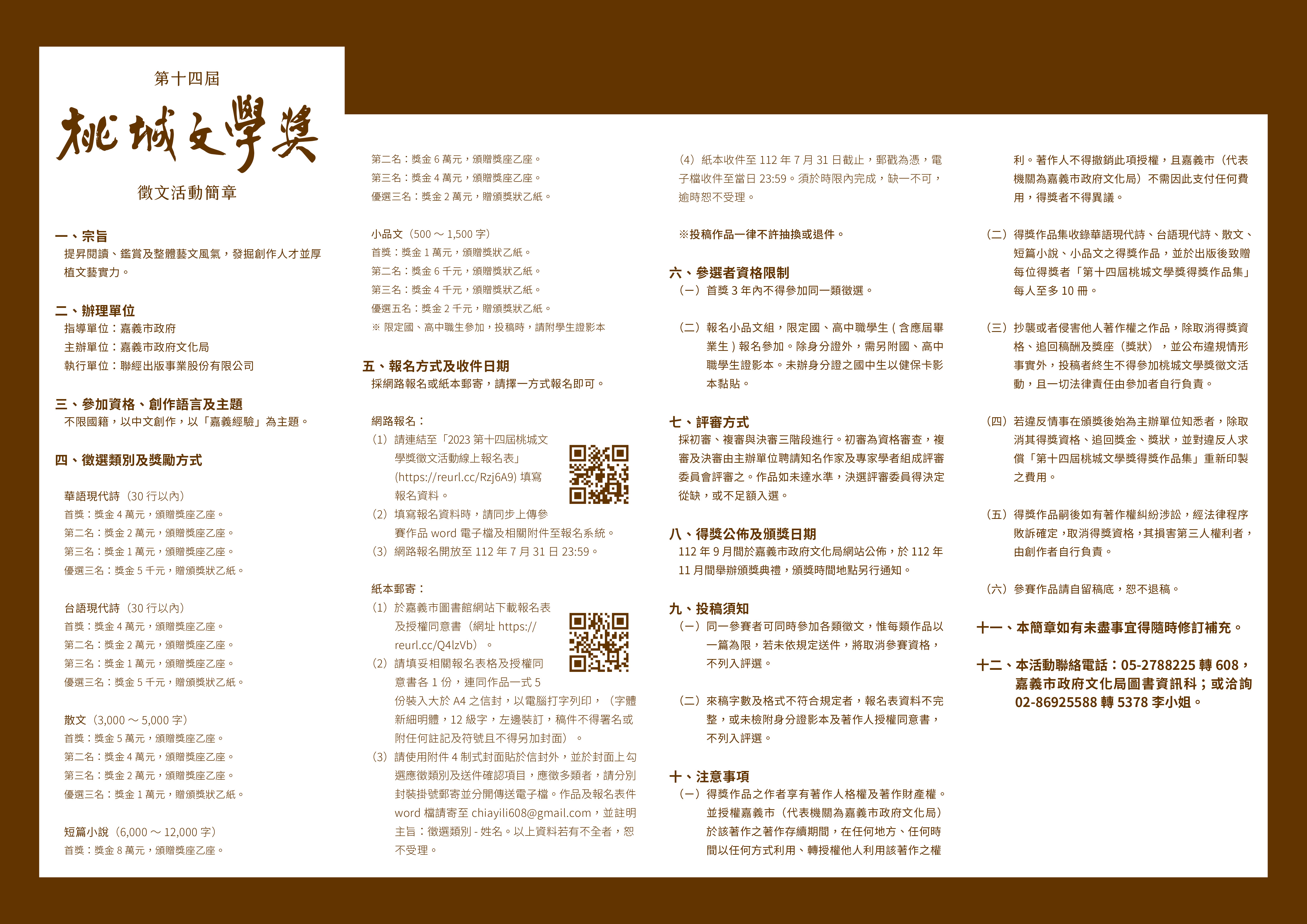 嘉義市政府文化局辦理「第14屆桃城文學獎」徵文活動