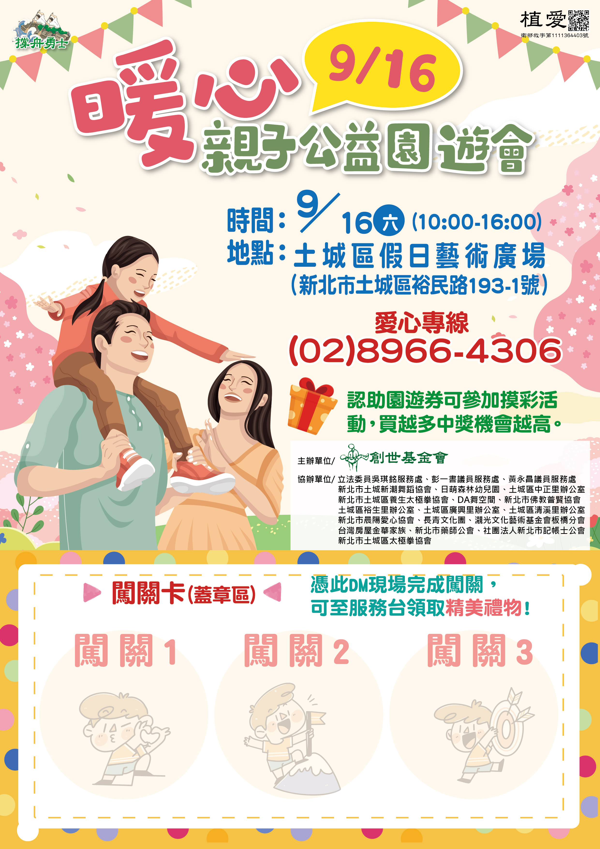 創世基金會9/16於土城假日藝術廣場辦理暖心親子公益園遊會