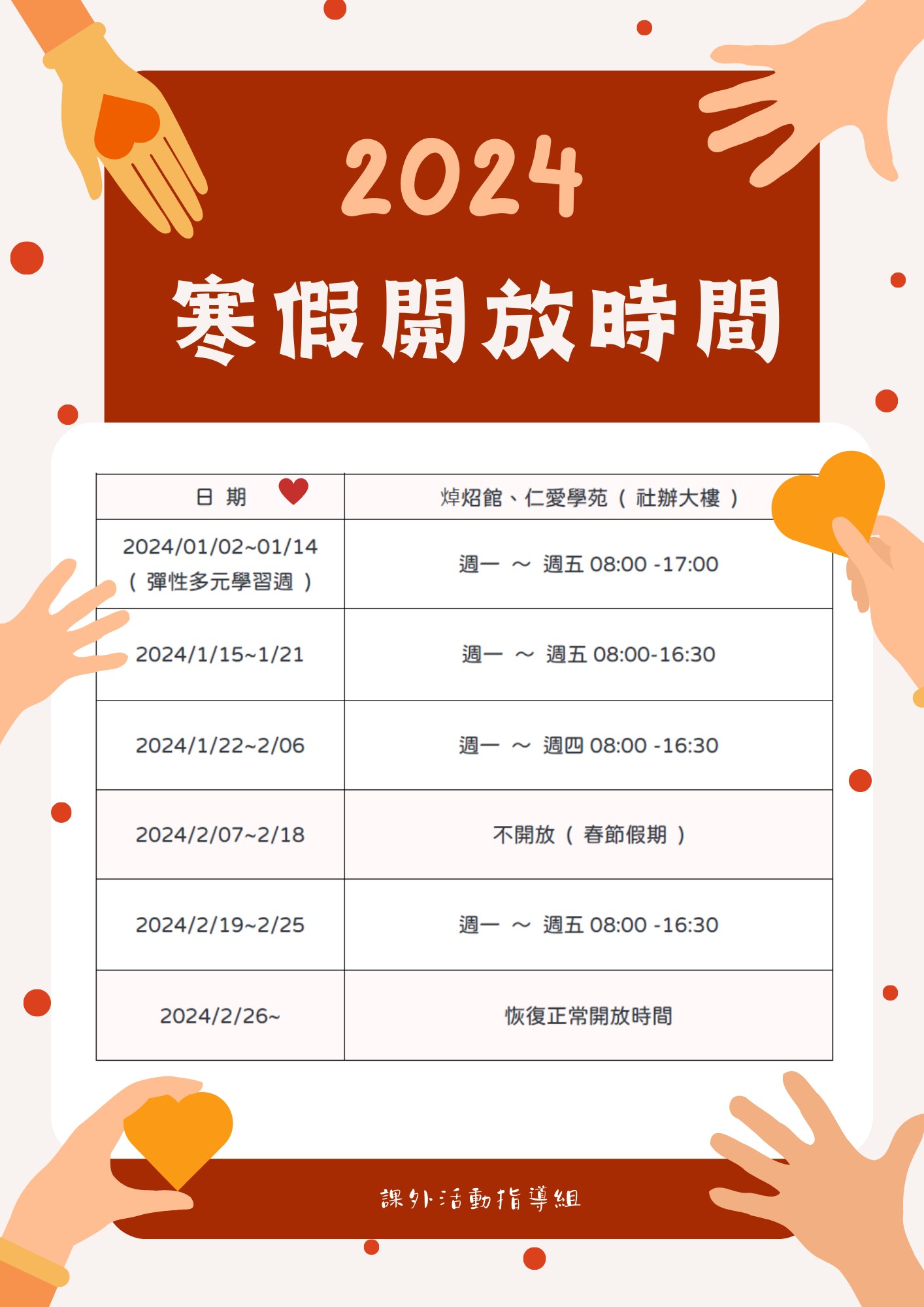 | 課外活動指導組&社團辦公室 | 寒假開放時間公告