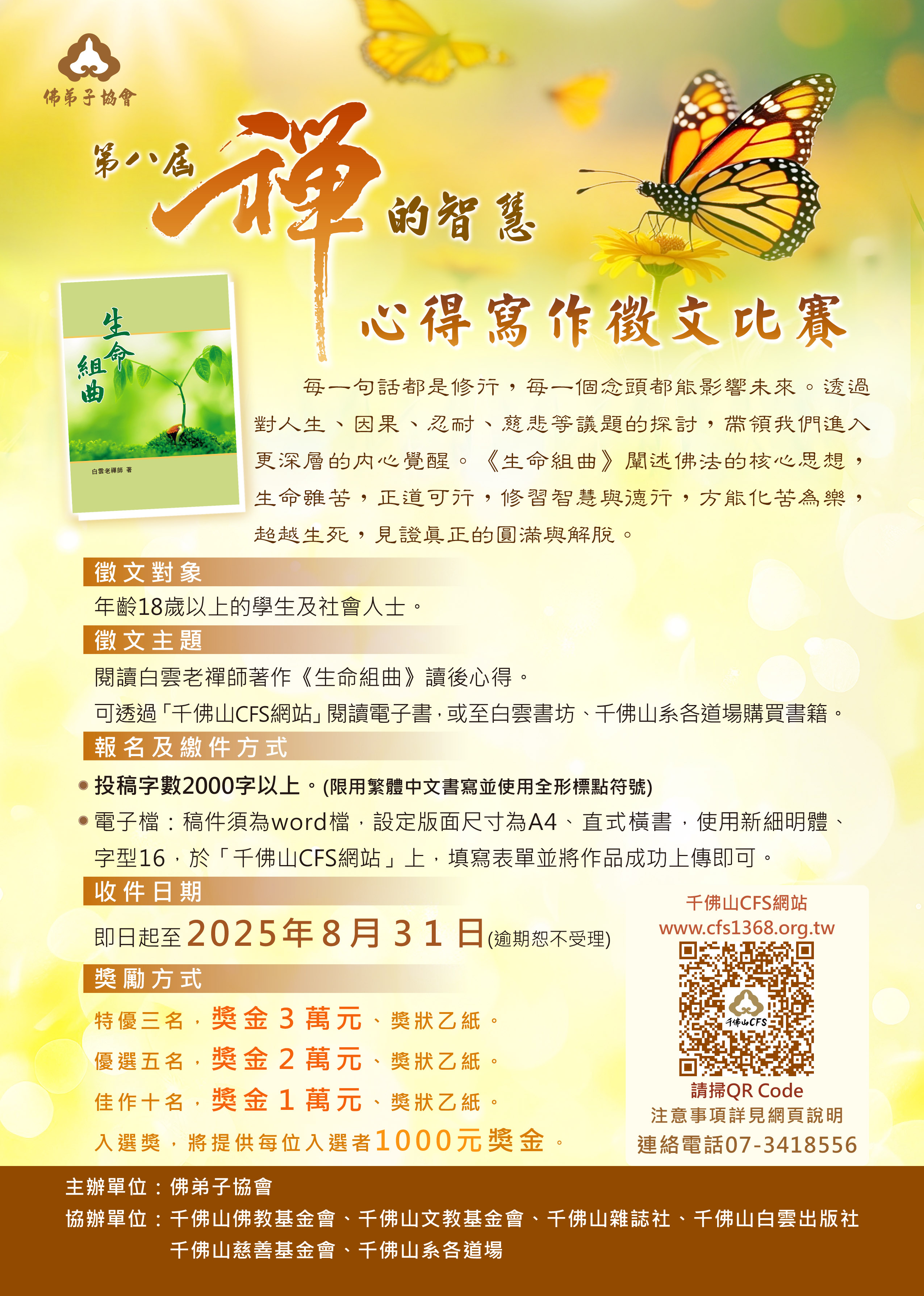 為推廣閱讀風氣與心靈教育,本會誠請協助宣傳【第八屆禪的智慧」