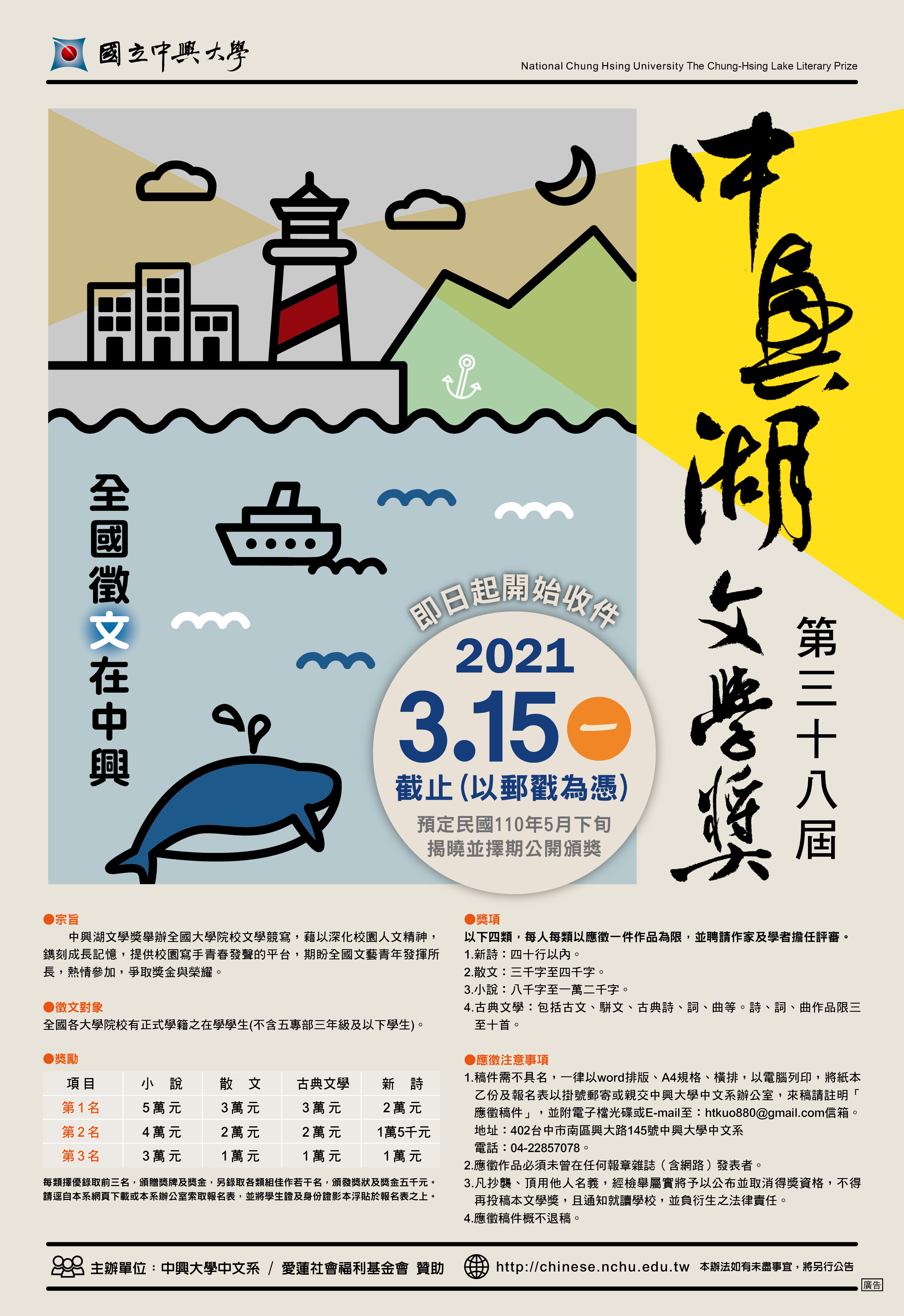 「國立中興大學第38屆中興湖文學獎全國徵文比賽」