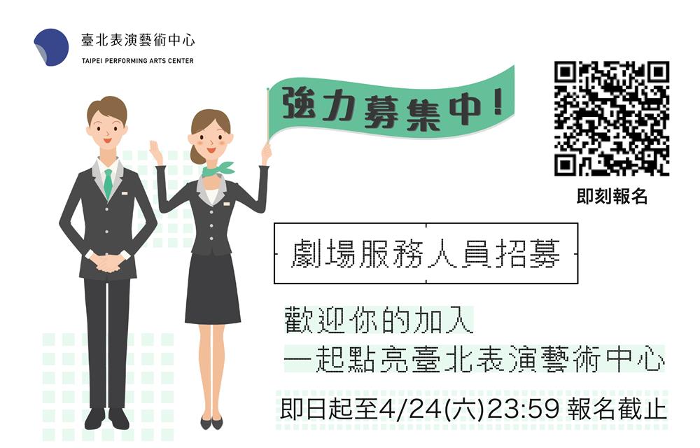 臺北表演藝術中心即將開幕,劇場服務人員熱烈招募中!