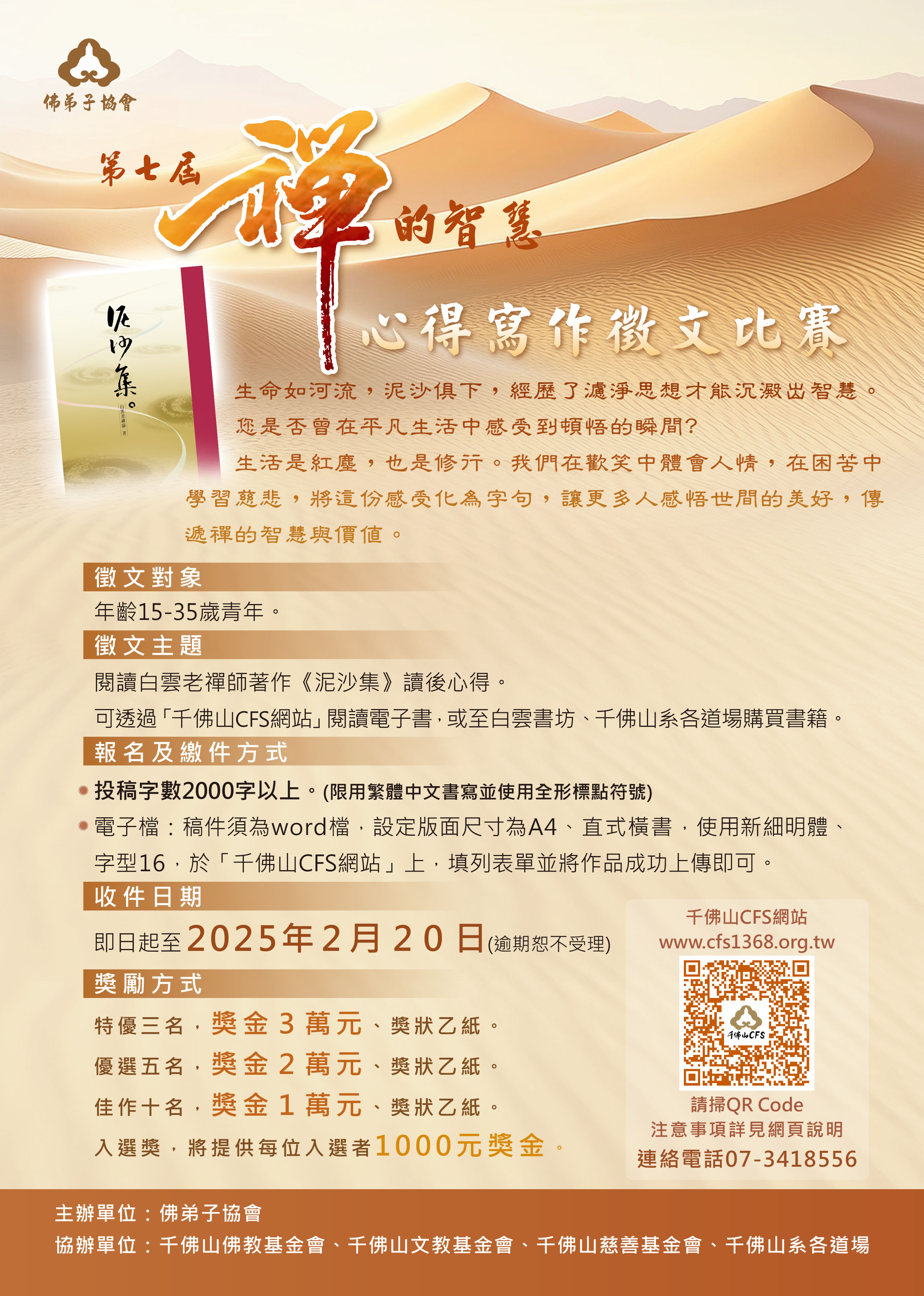 指定閱讀 白雲老禪師著作《泥沙集》;獎金最高三萬元