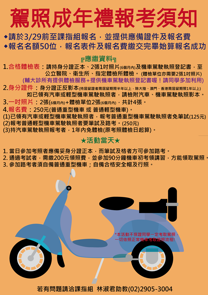 🛵【駕照成年禮】校內機車考照活動來囉~~