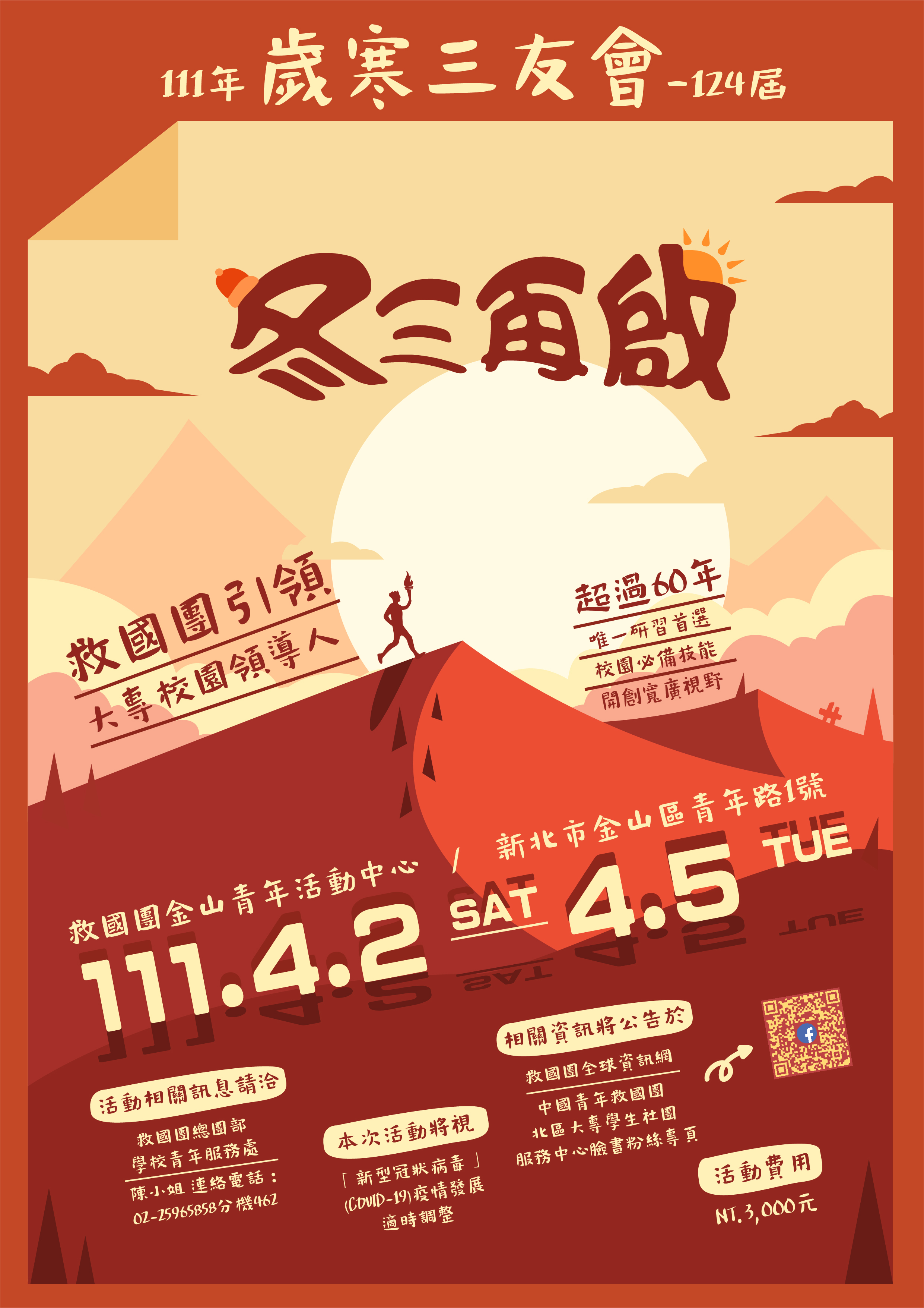 二、 本次活動先前因受疫情影響,延期至111年4月2日(星期六)至4月5日(星期二)辦理,活動費用隨天數減少調整,先前繳費保留名額之學員,將於活動報到時辦理差額退費。